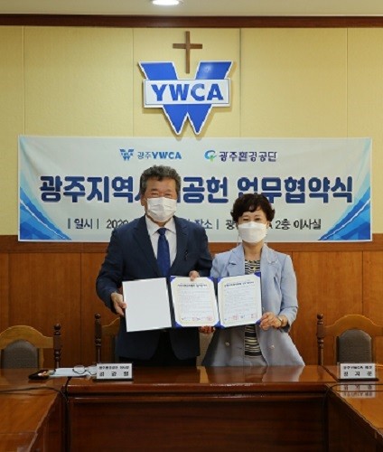 | ▲ 광주환경공단-광주YWCA와 지역사회공헌을 위한 업무협약 체결 (좌측 김강열 광주환경공단, 우측 정지윤 광주YWCA 회장) / 광주환경공단 제공 |