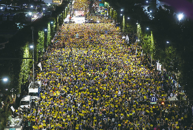 오후 서울 서초구 서초동 중앙지검 앞에서 열린 검찰 개혁 촛불 문화제에서 참석자들이 구호를 외치고 있다.