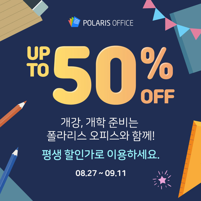 [시민일보 = 황혜빈 기자] 인프라웨어의 폴라리스 오피스가 개강 시즌을 맞아 오는 9월11일까지 할인 프로모션을 진행한다고 밝혔다.