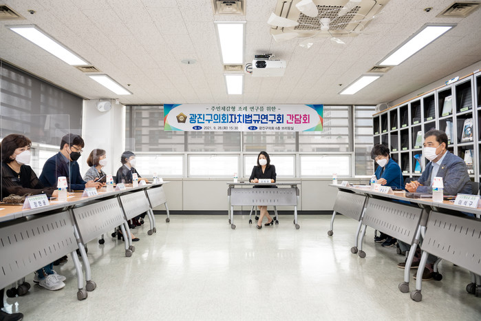 [시민일보 = 여영준 기자] 서울 광진구의회(의장 박삼례) 의원연구단체인 ‘광진구의회자치법규연구회’가 최근 브리핑실에서 광진구통장협의회를 초청해 주민체감형 조례 연구를 위한 간담회를 열었다.