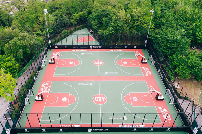 새롭게 단장한 아웃도어 코트는 투숙객과 반얀트리 회원을 위해 마련된 공간으로 리뉴얼을 통해 국제 규격에 준하는 28m x 15m의 농구 코트 2개면과 38m x 29m에 달하는 규모의 테니스 코트 2면을 구축했으며, 특히 농구 코트는 멀티 코트 형태로 풋살장으로도 사용 가능해 활용도를 높였다.