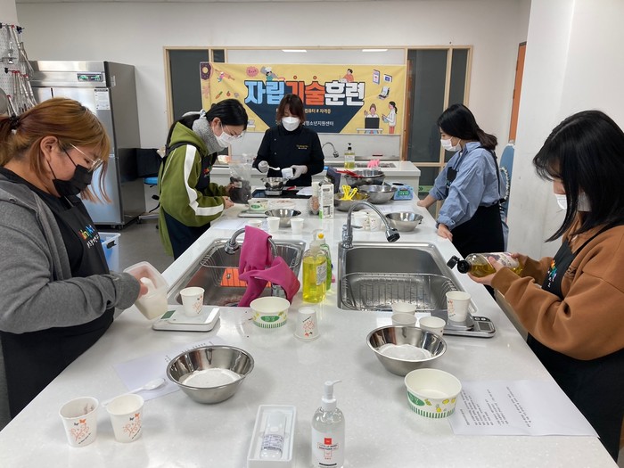 경기 포천시학교밖청소년지원센터가 비대면 자립준비교실을 수료한 학교 밖 청소년을 대상으로 자립기술훈련과 직장체험을 진행한다. 사진은 지난 9일 시작된 자립기술훈련으로 쿠킹아트 지도사 자격 과정 교육이 진행되고 있는 모습. (사진제공=포천시청)