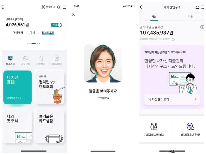 아울러 '뉴 하나원큐'는 은행권 최초로 '얼굴인증 서비스'를 도입해 휴대폰 종류와 상관없이 얼굴인증만으로도 1초만에 간단하게 로그인 할 수 있고 공인인증서와 보안카드, OTP 없이도 쉽고 빠른 이체를 할 수 있다. '얼굴인증 서비스'에는 '1Q Agile Lab' 10기인 AI 얼굴인식 스타트업 (주)메사쿠어컴퍼니가 참여했다.