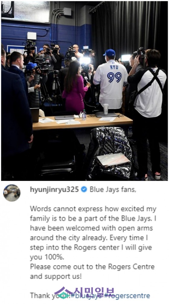 당시 류현진은 "토론토 블루제이스의 일원이 된 것에 대해 우리 가족들이 얼마나 흥분되는지 말로 표현하기 어렵다"고 운을 뗐다.