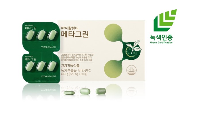 [시민일보 = 황혜빈 기자] 아모레퍼시픽의 이너뷰티 솔루션 브랜드 바이탈뷰티가 메타그린 제품에 대해 농림축산식품부로부터 '녹색기술제품인증'을 받았다고 밝혔다.