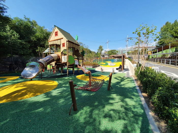 정비를 통해 어린이들의 체력 증진과 창의력을 키울 수 있는 바람언덕 슬라이드, 바구니그네, 네트놀이대, 통나무계단, 트램플린, 해먹 등의 다양한 시설물과 보호자를 위한 파고라 등의 편의시설이 새롭게 설치했다.