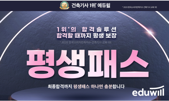 [시민일보 = 여영준 기자]종합교육기업 에듀윌(대표 박명규)은 합격 솔루션을 담은 건축기사 ‘평생패스’ 과정을 선보였다고 15일 밝혔다.