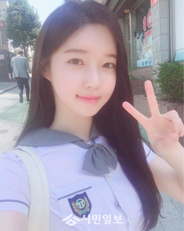 김유지는 개인 인스타그램을 통해 "중학교 교복 입은 고등학생 하핫"이라는 내용과 함께 사진을 게재했다.