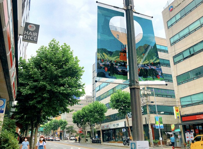 | ▲ 가로등현수기에 걸린 예술작품들. (사진제공=강남구청) |