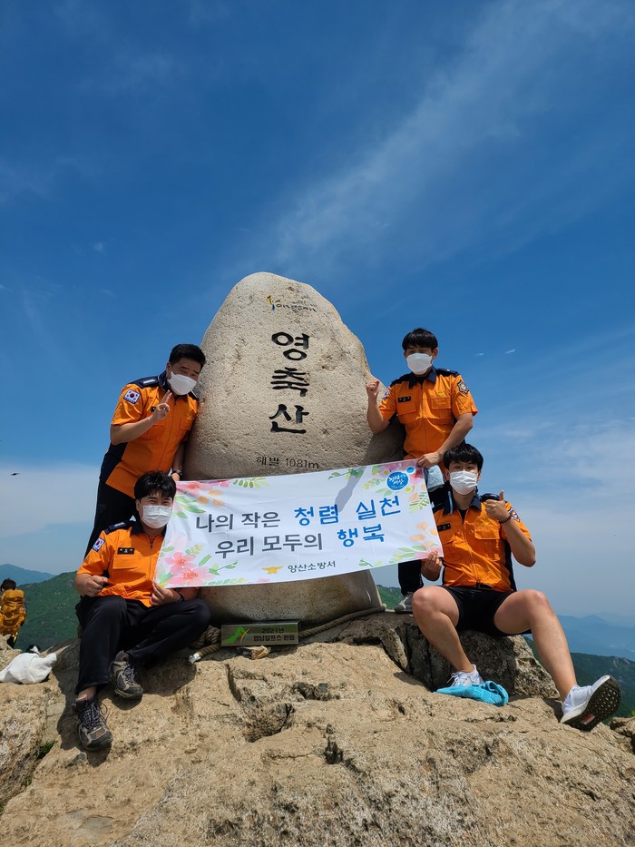 양산소방서(서장 박정미)는 청렴 문화 정착을 통해 시민으로부터 신뢰받는 소방행정을 실현하기 위해 하북면에 위치한 영축산에서 청렴릴레이를 추진하였다고밝혔다.