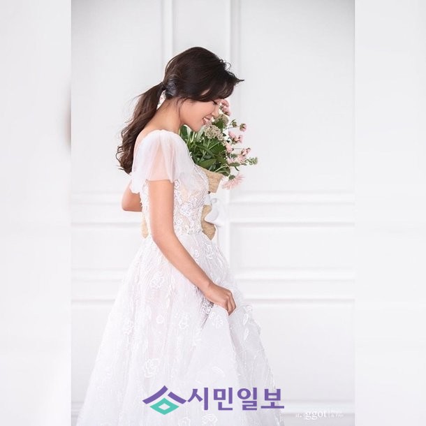 공개된 사진 속 이보미는 웨딩드레스를 입고 단아한 아름아룸을 뽐내 시선을 사로잡았다.
