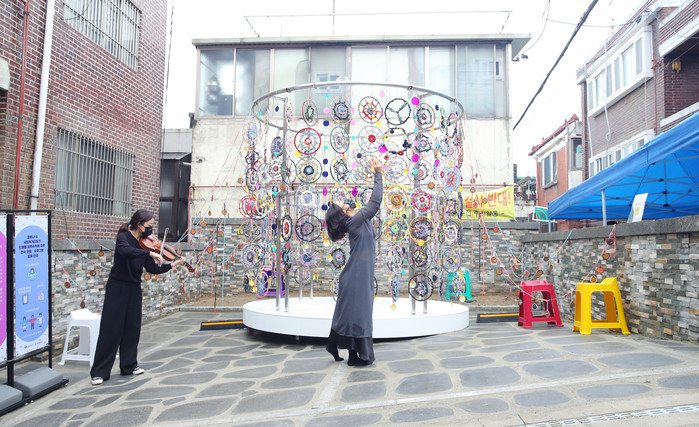 태평동 주민 150명이 링 위에 다양한 색깔의 양말목을 엮어 만든 작품들을 다시 수거해 두 예술가(엄아롱, 송하나)가 새로운 공공 창작 작품으로 탄생시켰다. 주민과 예술가가 함께 만든 작품들은 태평동 골목 야외공간(태평동 1631번지)에 오는 12월 4일(금)까지 전시한다.