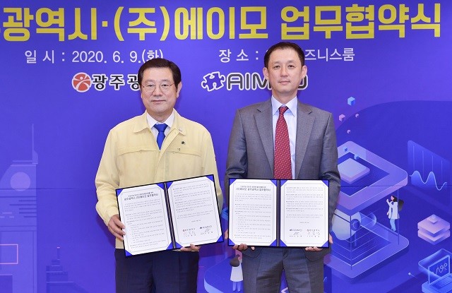 광주시와 ㈜에이모는 9일 시청 비즈니스룸에서 업무협약을 체결했다.