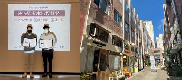 ㈜티스퀘어는 부산진구의 떠오르는 핫플레이스이자 부산 로컬크리에이터들이 모여있는 ‘전리단길 활성화’를 목표로 △㈜청년진구 △전리단길 협의체와 MOU(업무 협약)를 체결했다.
