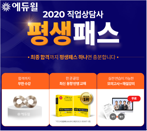 직업상담사 ‘평생패스’의 수강신청 및 자세한 내용은 에듀윌 홈페이지에서 찾아볼 수 있다.