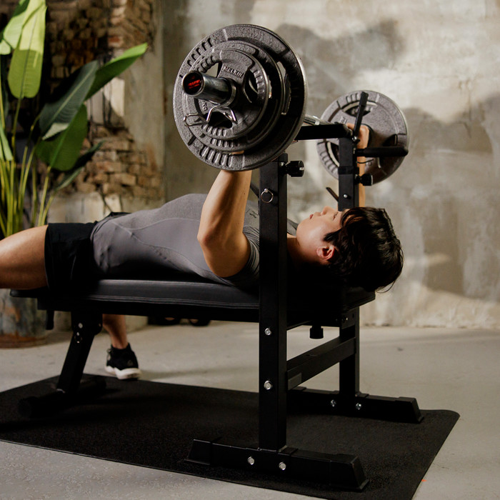홈트레이닝이지만 다양한 강도를 원하는 소비자에 맞춘 멜킨 벤치프레스는 5단 높낮이 조절과 KC안전인증 역대 걸이대로 사용자의 체형에 따라 맞춤형 운동이 가능하다.