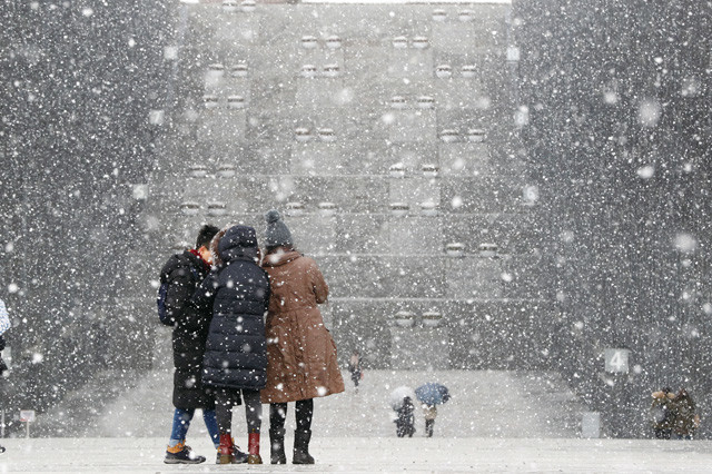 내린 16 서울 이화여자대학교에서 학생들이 이동하고 있다.