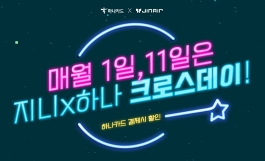 [시민일보 = 여영준 기자] 하나카드는 진에어와 함께 내년 연말까지 매달 '지니 x 하나 크로스데이' 이벤트를 진행한다고 1일 밝혔다.