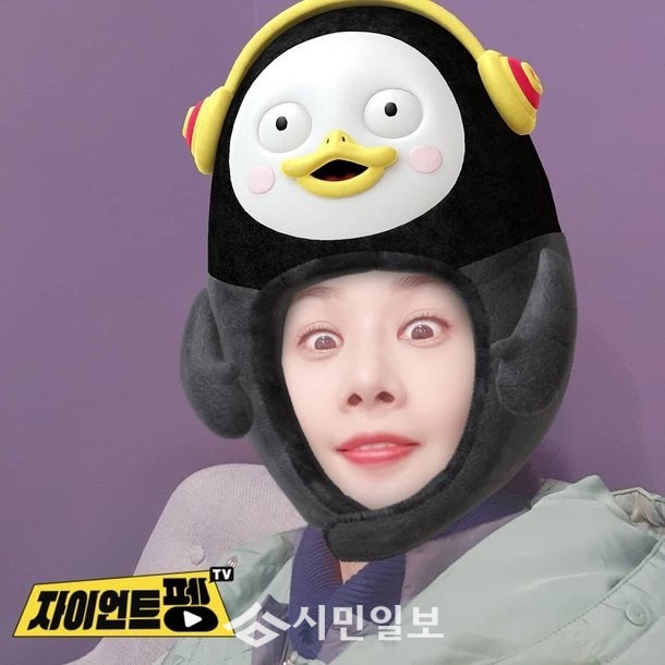 공개된 사진 속 김가연은 카메라 어플로 EBS 대세 펭수 모자를 장착하고는 귀여운 표정을 짓고 있는 모습으로 웃음을 자아냈다.