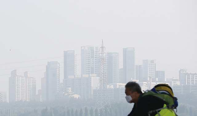 일교차를 기록한 20 서울 한강 잠수교에서 바라본 서초구 일대가 안개와 미세먼지로 덮여 있다. 기상청은 21 수도권, 강원 영서, 충청권, 광주, 전북에서 미세먼지 농도가 ‘나쁨’ 수준을 보일 것으로 예보했다.