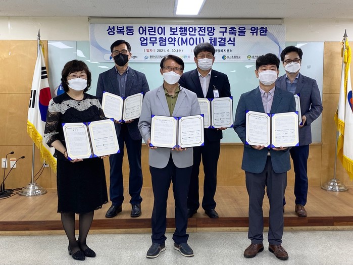 [용인=오왕석 기자] 용인시디지털산업진흥원(원장 김윤석, 이하 진흥원) 및 성복동 행정복지센터(동장 김경수), 알티앤씨㈜(대표 유성훈), 성복동 소재 3개초 성복초(교장 김태석)·성서초(교장 최양석)·효자초(교장 장은수) 등 6개 기관은 성복동 일대 어린이 보행안전망 구축을 위해 6월 30일 오전 성복동 행정복지센터에서 업무협약을 체결했다고 밝혔다.