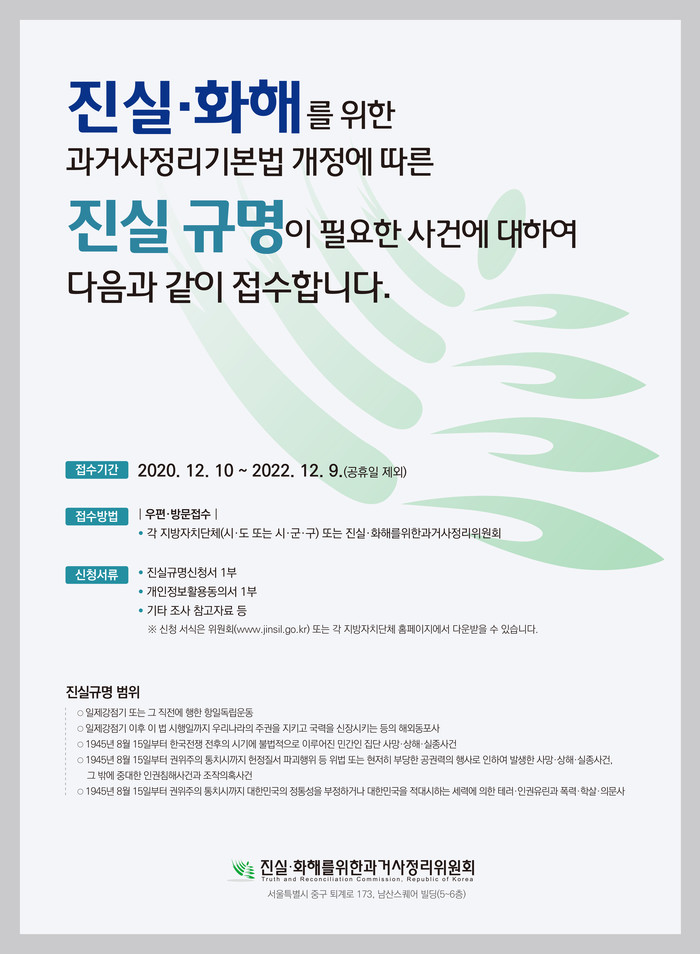 | ▲ 과거사 진실규명 신청 접수포스터 |