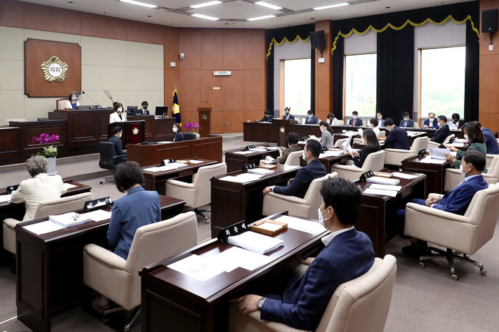 김안숙 의장은 개회사를 통해 “코로나19 4차 유행의 확산세가 지속되는 가운데 의회는 민생을 살리는 큰 틀 안에서 새로운 의정활동을 펼쳐야 한다”며, “두차례 추경을 비롯해 올해 편성된 예산이 제대로 집행되는지, 구민에게 가장 필요한 입법이 무엇인지 고민하며 의회 본연의 일에 집중할 시기다”라고 말했다. 이어서 “하반기 의회는 다양한 이해관계를 조정하고 소통을 통한 교집합을 찾아나갈 것이며, 구민을 위한 의미 있는 변화를 만들기 위해 노력할 것이다”라고 전했다.