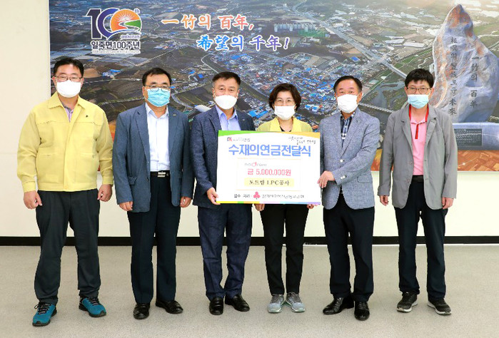 이를 위해 도드람엘피씨공사는 지난 14일 안성시청에서 김보라 안성시장과 이상일 도드람엘피씨공사 대표이사, 김성현 이사 등이 참석한 가운데 수재의연금 전달식을 갖고 경기사회복지공동모금회에 성금 500만원을 전달했다.