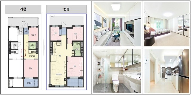그린리모델링은 단일세대와 세대통합 리모델링으로 구분해 시행된다. 단일세대 리모델링은 단일세대를 전면 보수해 1인 가구 및 주거약자 등에 공급할 예정이며, 세대통합 리모델링은 소형(26㎡) 2세대를 통합(52㎡) 확장해 다자녀, 신혼부부 등에 공급할 예정이다.