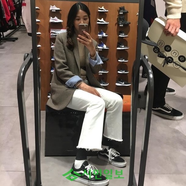 공개된 사진 속에는 신발 쇼핑 중인 장신영의 모습이 담겨 시선을 사로잡았다.
