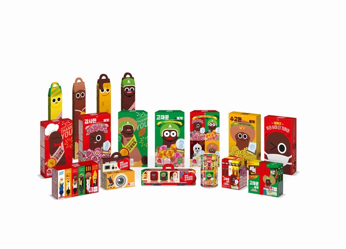 올해 선보인 기획 제품은 총 11종으로 ‘빼빼로 프렌즈’ 캐릭터를 사용했다. 이들 11종은 ‘감사’, ‘프렌즈’, ‘친환경’, ‘뉴’, ‘롱형’ 등 크게 다섯 가지 패키지 라인업으로 구성, 소비자 선택의 폭을 넓혔다. 특히 올해는 친환경 콘셉트를 내세워, 기획 제품으로 구성하면서 추가됐던 비닐류 포장을 최대한 배제하고 종이류로 대체했다.