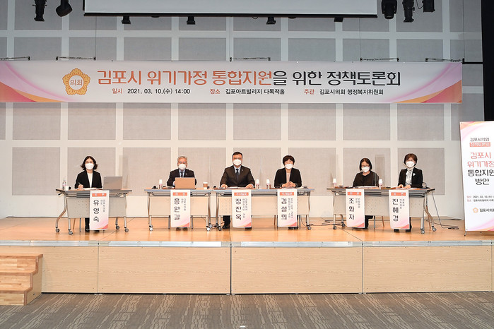[김포=문찬식 기자] 경기 김포시의회가 최근 김포아트빌리지 다목적홀에서 ‘김포시 위기가정 통합지원 방안 마련’을 주제로 2021년 두 번째 정책토론회를 열고 김포시 위기가정 통합지원방안을 찾기 위한 토론을 진행했다.