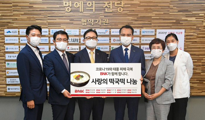BNK금융그룹 관계자는 “이번 나눔 행사가 코로나19 확산과 태풍 피해 등으로 어려움을 겪고 있는 우리 이웃들에게 작은 위로가 되기 바란다”며 “BNK는 앞으로도 지역과 따뜻한 나눔을 실천할 수 있는 다양한 사회공헌 활동을 지속적으로 이어가겠다”고 말했다.