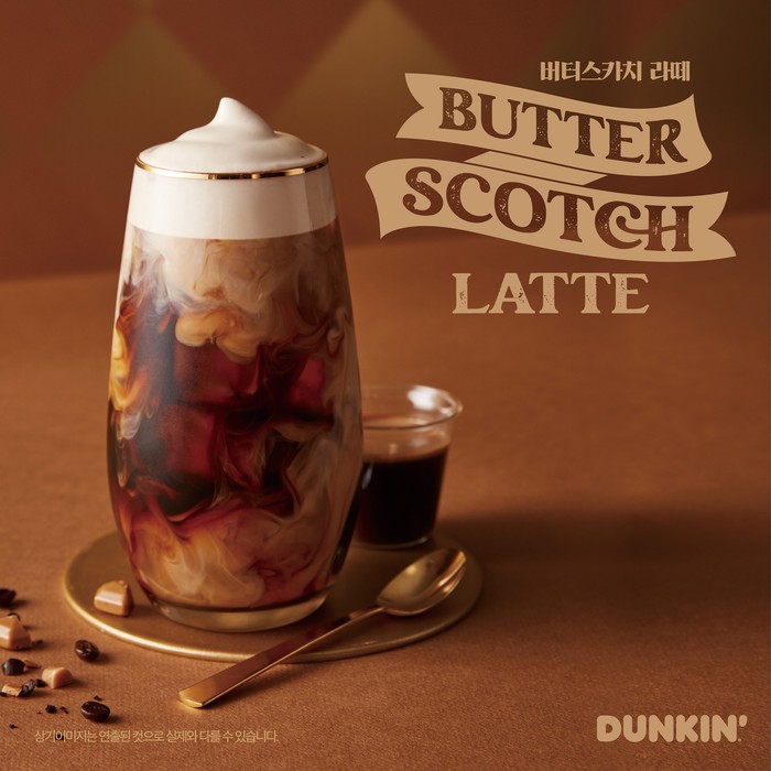 ‘버터스카치 라떼’는 달콤하고 진한 카라멜 맛의 ‘버터스카치’의 풍미를 라떼로 재현한 프리미엄 제품으로, 버터스카치 우유 베이스에 진한 던킨 에스프레소 샷을 더했다. 여기에 부드럽고 묵직한 스카치 밀크 폼을 올려 완성했다. 버터스카치의 부드럽고 달콤한 풍미가 진하고 씁쓸한 에스프레소와 조화를 이루며 색다른 커피 맛으로 풍미를 돋운다.