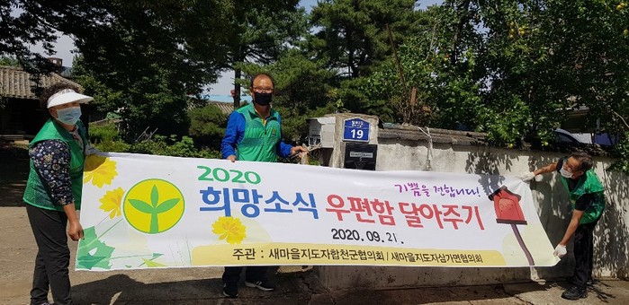 새마을지도자합천군협의회(회장 이종환)에서는 지난 21일 삼가면협의회(회장 한망천) 주관으로 ‘희망소식 우편함 달아주기 사업’을 추진했다.