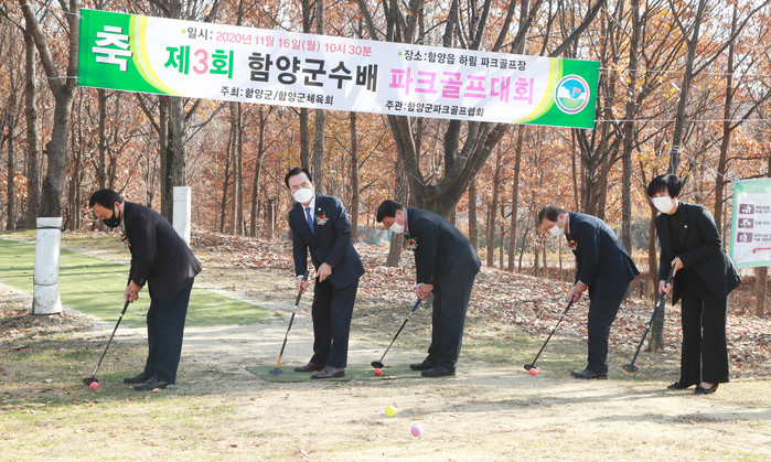제3회 함양군수배 파크골프대회가 16일 하림공원 파크골프장에서 100여 명의 파크골프 회원들이 참여한 가운데 성황리에 개최되었다.