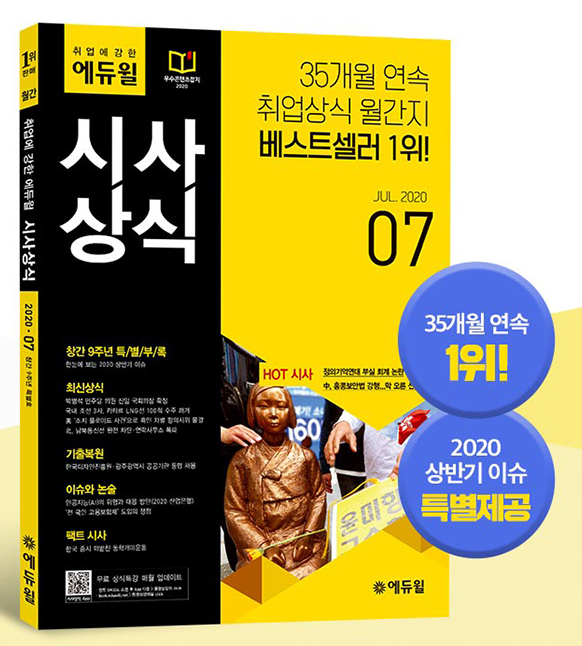 11일 에듀윌에 따르면 1위에 오른 ‘월간 최신 취업에 강한 에듀윌 시사상식 7월호’ 교재는 공기업, 언론사, 금융권, 대기업 등 취업에 도움을 주는 상식으로 가득 채워낸 것이다.