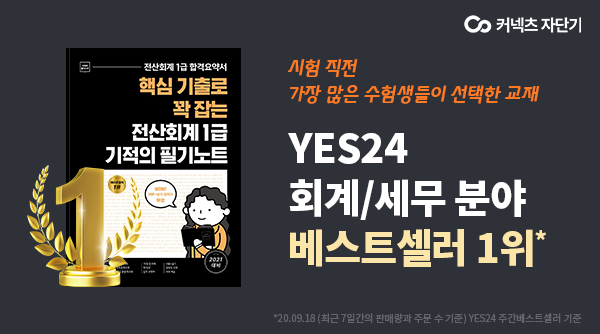 23일 인터넷서점 예스24에서 집계된 베스트셀러 순위(9월 23일 기준, 최근 7일간 판매량 및 주문수)에 따르면, 지난 20일 자단기에서 출간한 ‘전산회계 1급 기적의 필기노트’는 지난주 예약판매를 시작하며 베스트셀러에 진입한 후 출간 하루 만에 세무·회계 부문 정상을 차지, 현재까지 1위를 유지하고 있다.