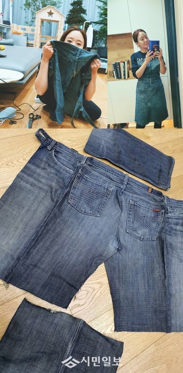 공개된 사진 속에는 백종원의 청바지를 잘라 앞치마를 만든 소유진의 모습이 담겨 훈훈함을 자아냈다.