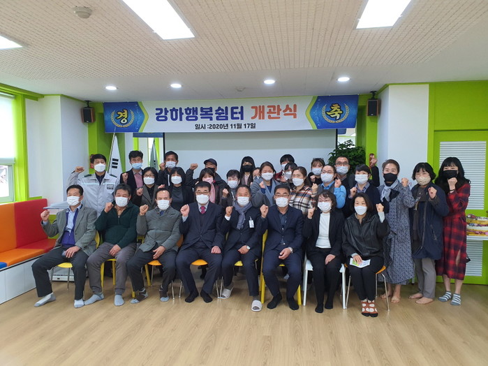 경기 양평군은 지난 17일 강하면 정보화마을에서 가족의 약화된 돌봄기능 보완 및 지역 유대관계 활성화를 목표로 하는 경기도형 아동돌봄공동체 사업의 일환인 ‘강하행복쉼터’ 개관식을 개최했다. 사진은 이날 정동균 군수(앞줄 오른쪽 네 번째)가 관계자들과 기념촬영을 하는 모습. (사진제공=양평군청)