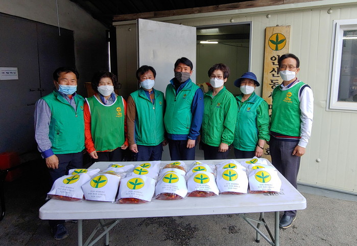 경기 안산시 상록구 안산동 새마을회가 16일 소외된 이웃에 대한 사랑 나눔을 실천하기 위해 '사랑의 파김치 나눔' 행사를 개최했다. 이날 담근 파김치는 지역내 소외계층 20가구에 전달됐다. 사진은 관계자들이 기념촬영하는 모습. (사진제공=안산시청)