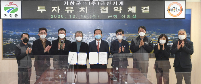 이날 투자협약은 코로나19 확산에 따라 구인모 거창군수와 ㈜금산기계 조수현 대표 등 회사 관계자 최소 인원이 참석한 가운데 개최됐다.