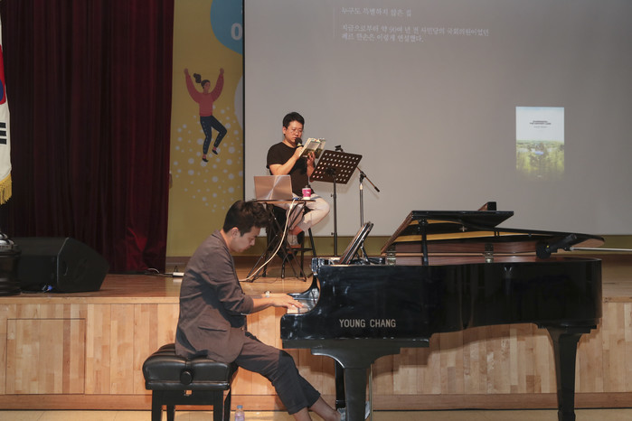 서울 성동구는 최근 구청 대강당에서 직원과 주민을 대상으로 하는 인권감수성 향상 교육을 실시했다. ‘별을 건너서, 오로라를 건너서’를 부제로 마련된 이번 교육은 문화와 예술이 접목된 토크 콘서트 형식으로 진행됐다. 사진은 교육이 진행되는 모습. (사진제공=성동구청)