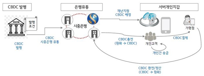 또한 CBDC의 발행 형태를 개인이 보유한 원화 잔액에서 환전해 사용하는 일반자금과 특정 목적으로 정부 및 지자체에서 교부하는 재난지원금으로 구분하고 자금 별로 원장을 별도 관리할 수 있도록 했다. 특히 재난지원금은 사용처를 한정하거나 사용 기한도 설정할 수 있도록 했다.