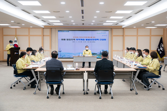 경북 구미시가 지난 23일 지역 원룸 밀집지역 6개 동장, 복지관련 부서장, 구미경찰서, 경북서부아동보호전문기관 등 20여명이 참석한 가운데 위기아동 및 복지사각지대 해소를 위한 '원룸 밀집지역 취약계층 발굴 보호 대책 간담회'를 열고 이 지역 행정복지센터의 복지사각지대 발굴 추진상황과 복지관련 부서의 지원 방안을 점검했다. 사진은 장세용 시장이 간담회를 주재하는 모습. (사진제공=구미시청)