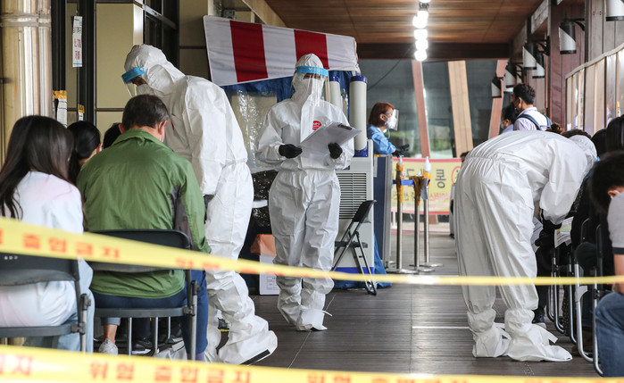 26일 오전 서울 송파구 보건소에 설치된 코로나19 선별검사소에서 관계자들이 분주하게 검사를 받으러 온 시민들을 안내하고 있다. 이날 발표된 전날 코로나19 확진자는 707명을 기록해 12일 만에 다시 700명대로 올라섰다.