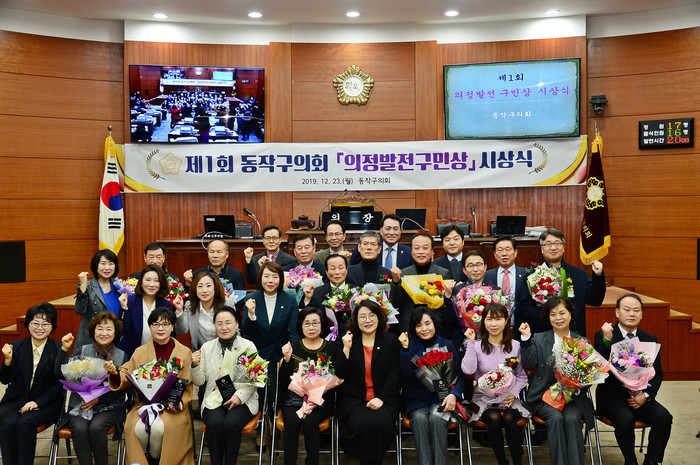 [시민일보 = 여영준 기자] 서울 동작구의회(의장 강한옥)가 최근 본회의장에서 의회 개원 이래 처음으로 '제1회 동작구의회 의정발전 구민상' 시상식을 개최했다.