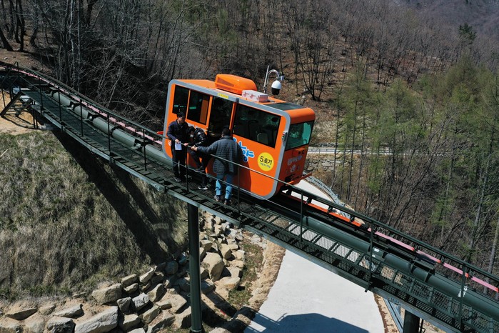 군에 따르면 24일 오후 1시 휴양밸리과 직원과 안전관리요원, 훈련 지원 요원 20여명이 대봉모노레일 하부승강장에 집결해 운행 차량 고장에 따른 안전사고를 염두에 두고 가상훈련 시나리오에 의거 현장 훈련을 실시하였다.