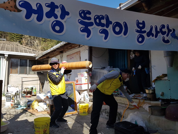 이날 봉사활동은 오래된 노후주택에 거주하는 지체장애 노인부부 가구의 안타까운 사정을 남상면으로부터 전해들은 뚝딱이 봉사단이 주택수리를 제안해 추진됐다.