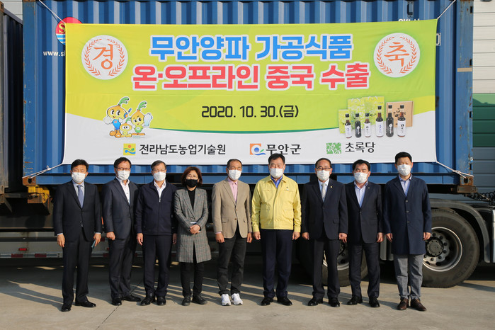 군은 양파간장을 시작으로 알리바바 타오바오, 웨이디엔 등 온라인과 홍교자유무역성, K-MART 등 오프라인으로 중국시장에 무안의 농수특산물 수출을 확대해 갈 계획이며, 이날 행사에 앞서 무안군과 전남농업기술원, ㈜JHE 글로벌과의 중국 100만 불 수출협약도 체결했다.